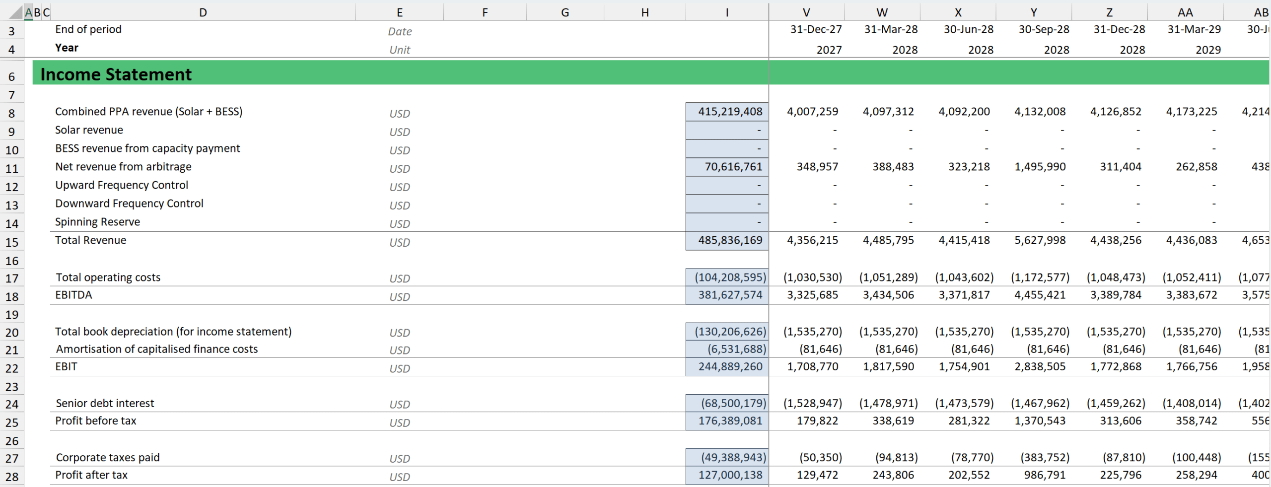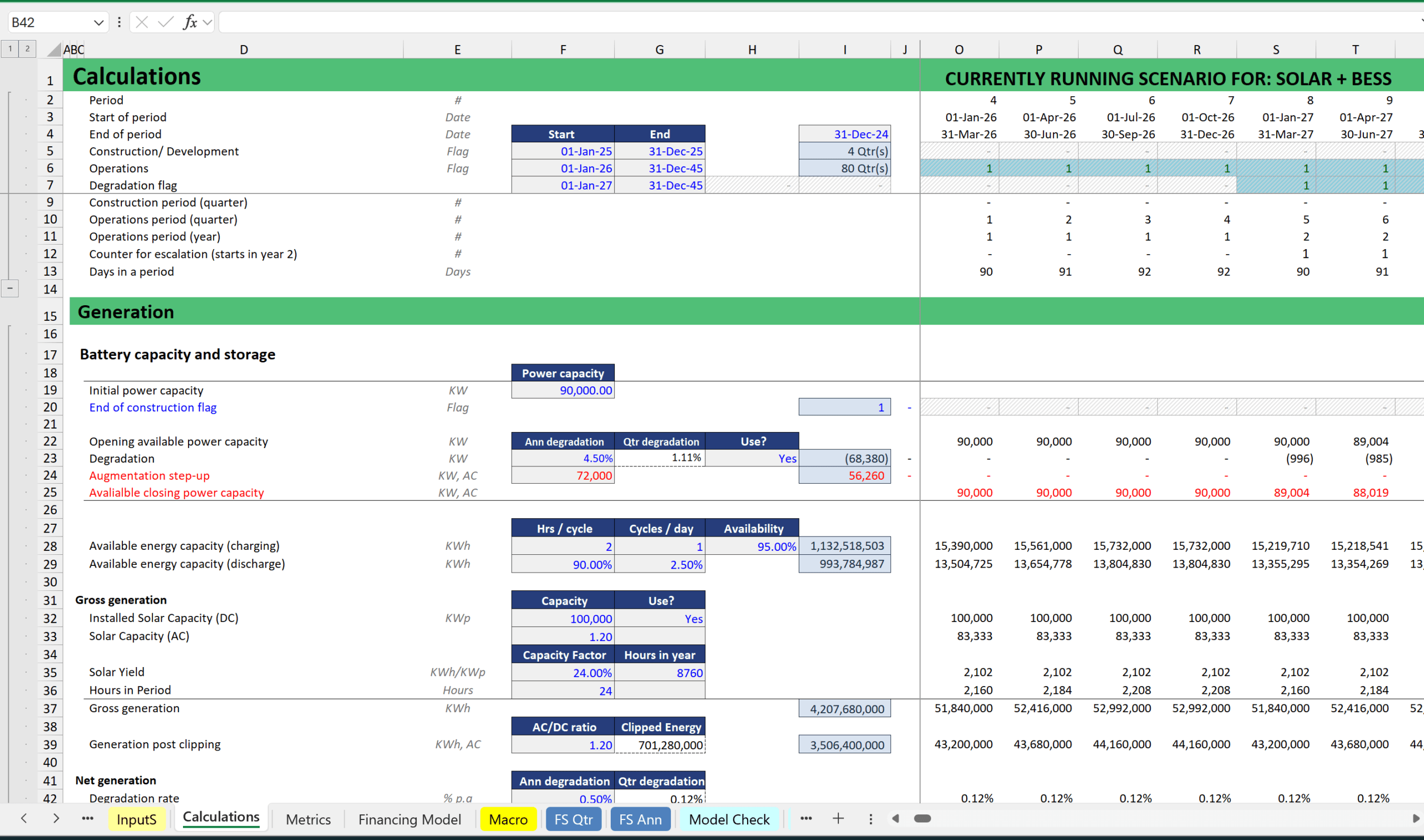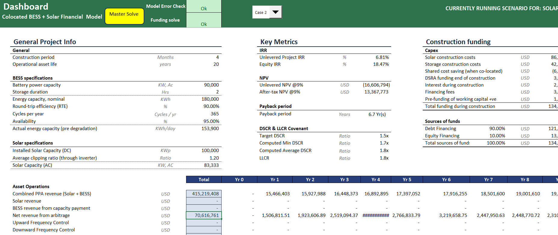 This .xlsm template has all you need for modelling your Co-Located Solar + BESS project.