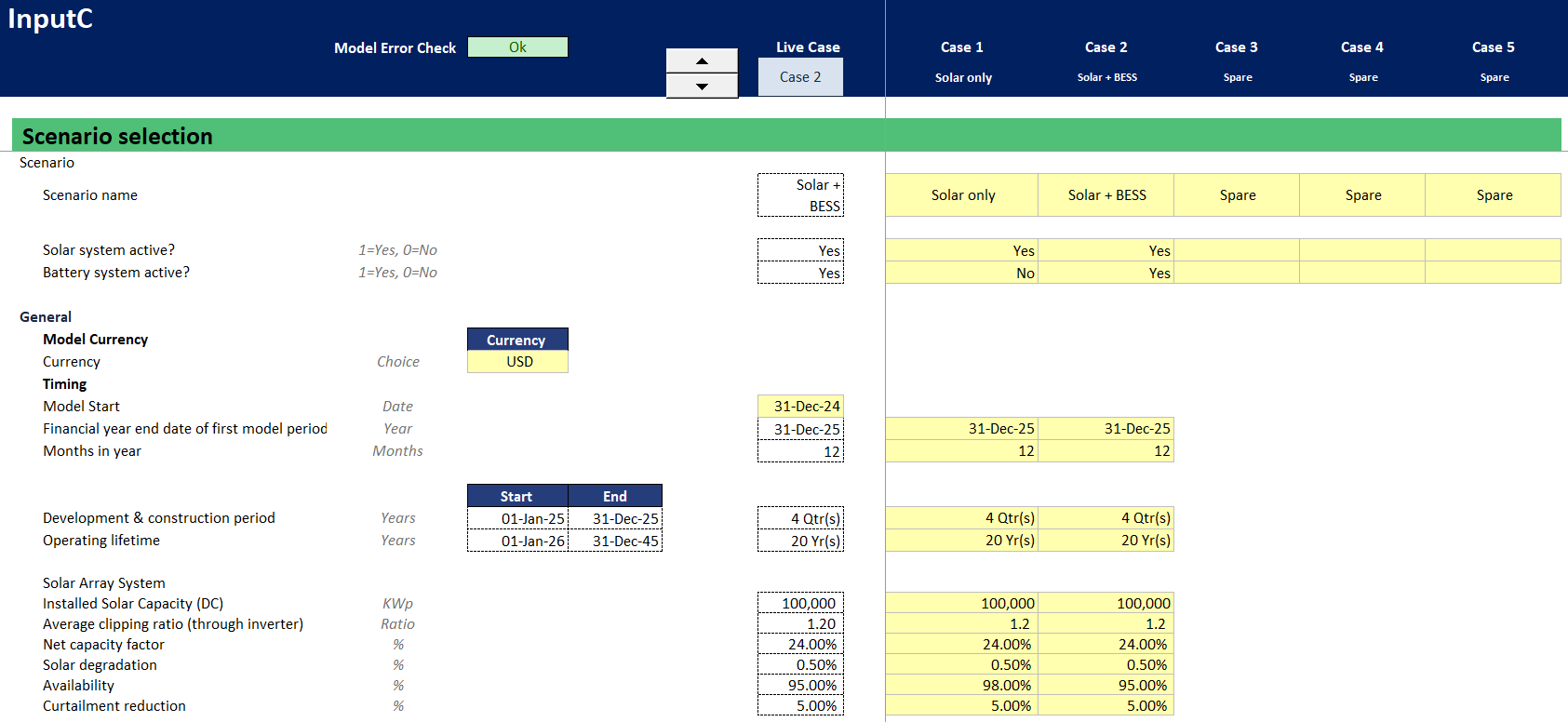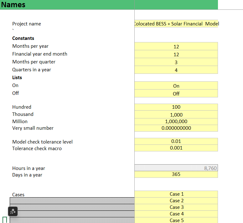 This financial modelling template has been prepared for general guidance. It is intended to provide a framework for understanding and assessing Co-located Solar + BESS projects but does not capture all potential scenarios and project specific considerations.